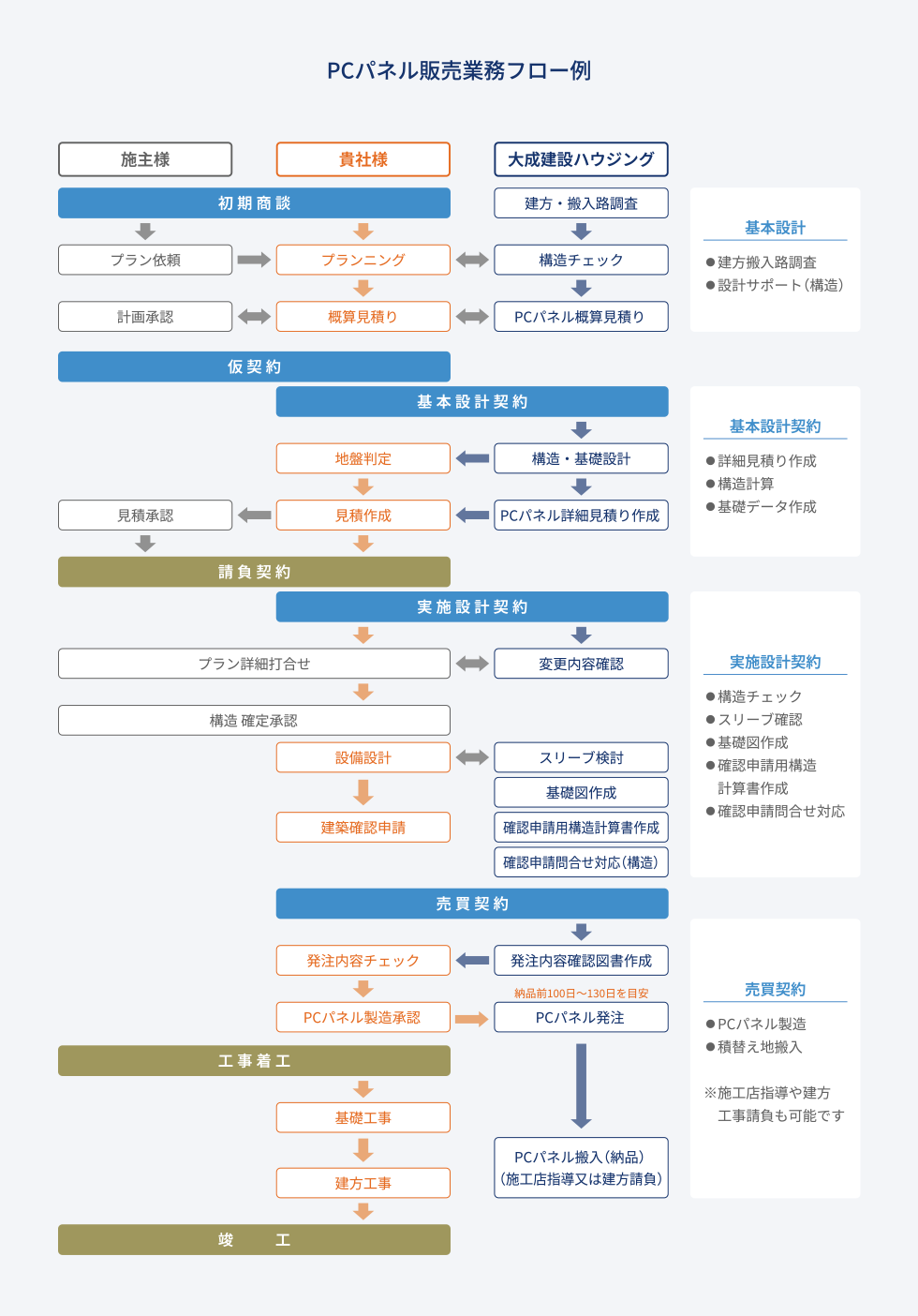 - ・PCパネルの建方工事をサポート、または直接施工