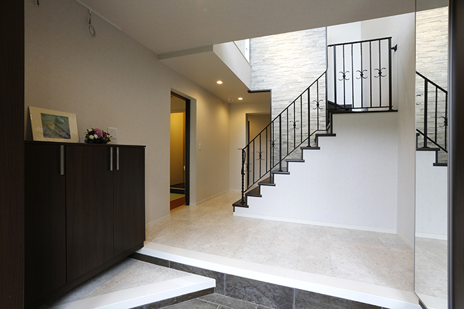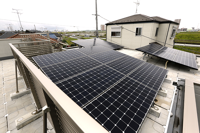 両世帯とも省エネを考え、エネファームを導入されています。また子世帯の屋上には5.5kwの太陽光発電システムを搭載しダブル発電に。地球環境にやさしい家づくりとなりました。